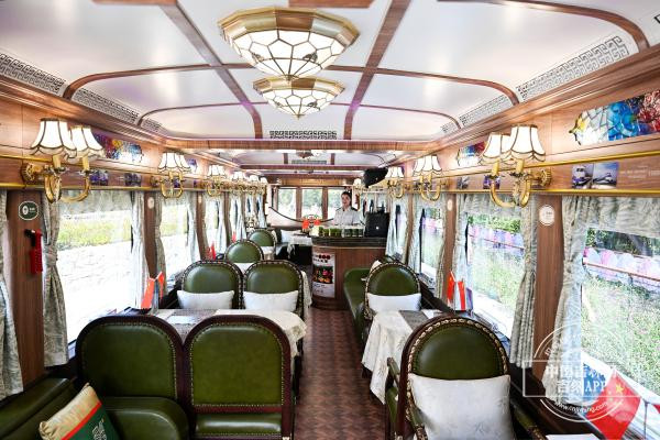 列车设计融合了历史建筑元素与复古美学风格——回纹雕栏、玻璃彩饰、弧形穹顶,这些细节处处体现着长春的城市文化底蕴。而内置的氢动力系统,则赋予了这台列车绿色环保的现代内核。